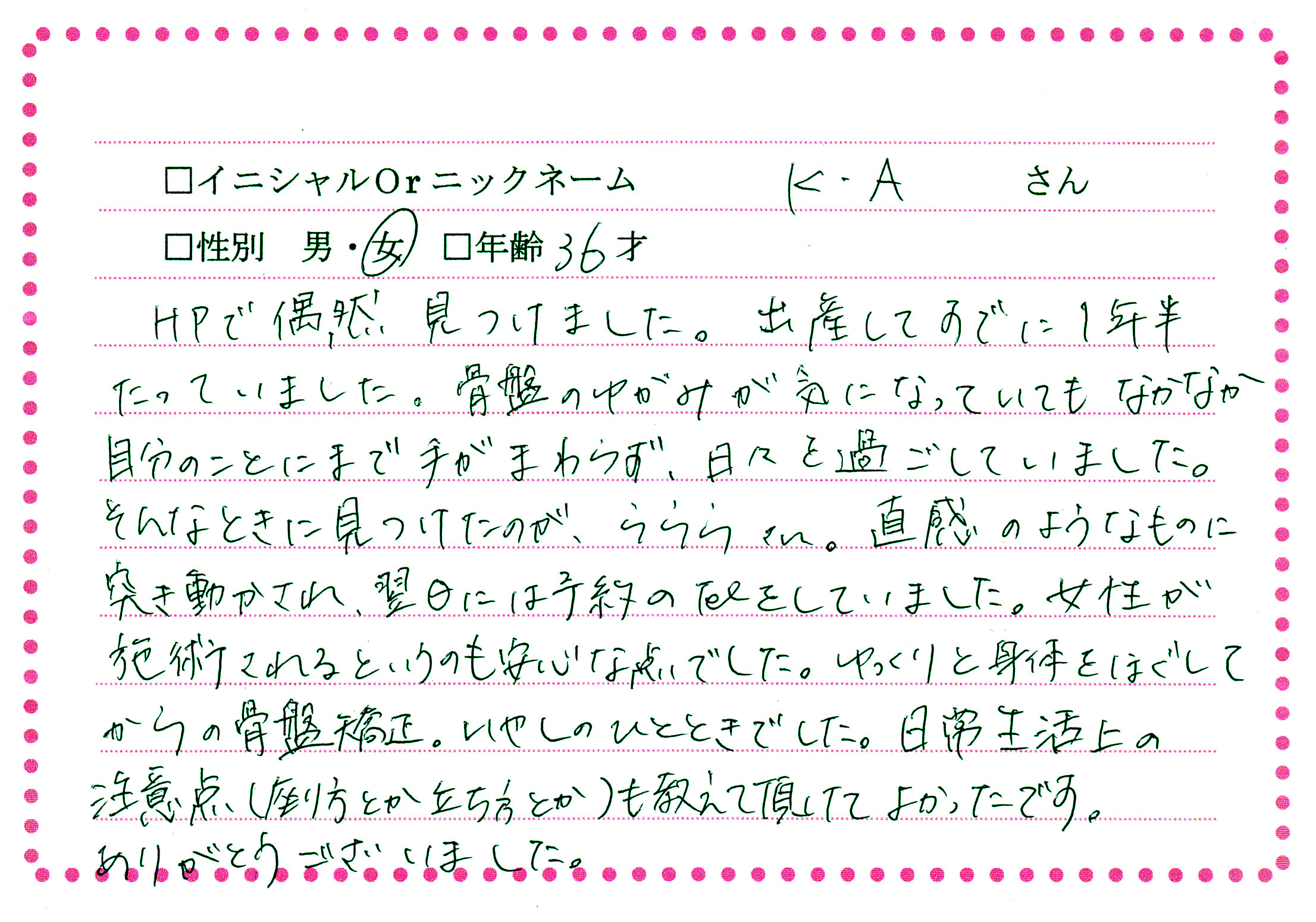 美容骨盤矯正を受けられた30代(K.A)さん!